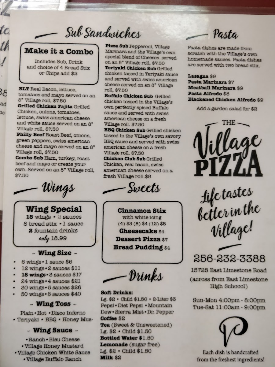 The menu at Village Pizza offers a straightforward, comforting selection centered on classic Italian-American favorites with a focus on pizza and wings. It’s the kind of place where you can enjoy casual bites that feel familiar and satisfying, whether you’re gathering for a relaxed family dinner or grabbing something quick for delivery or takeaway.